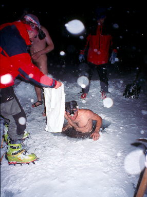 83. Tam lehce svačíme, strháváme pásy a psychicky se ladíme na sjezd.