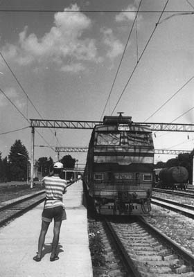 V nádražní hale shazujeme bágly, já s Péťou se stavím do fronty na lístky. Během chvilky je u Petra překupník. Naštěstí netuší, že patříme k sobě, takže se ho Péťa táže na nákup lístků do Kijeva, pak na toaletu a vzápětí spolu mizí kdesi v suterénu. Bez peněz se dostávám k okýnku, pouštím před sebe lidi a čekám, kde se objeví. Sláva, někde ho setřás a už je tady. Přenechávám mu svý místo a stavím se do vedlejší fronty. A už je tu ten mafián. Teďka jde po mě, to jsme potřebovali. Dělám, že si chci ty lístky na zejtřek do Kijeva koupit sám. On se jen tak nedá. Tohle je prej kasa pro invalidy. Má pravdu, pokladen je tu asi 10, jedna pro válečný veterány, další pro invalidy, třetí na zejtřek… jen jedno okýnko na dnešek a Péťa na řadě. Toho si překupník všimnul. Nechal mě a začal hučet do Péti. Chyt jsem ho za rukáv, vyptával se na pokladnu pro cizince, prej cestovka Inturist, asi tři ulice od nádraží, ptám se, jede-li tam tramvaj, jaký číslo… Sláva, Péťa má lístky! Vysmáli jsme se překupníčkoj, kterej zamektal něco v tom smyslu, že zařídí, abychom se do toho vlaku nedostali. Naštěstí ale nevěděl, kam jedem. Stejně jsme pro jistotu opustili halu jednotlivě. Sešli jsme se před nádražím u sudu s kvasem. Od Jardy Pavelky vím, že to stojí za ochutnání, tak neváháme a točíme. S jedenapůllitrovou petkou jsme měli ve čtyřech co dělat, zvláště když někteří po prvním ochutnání další konzumaci odmítli. Nakonec si ještě kupujeme pár dobrot na cestu a jdeme na nádraží. Mafián už oblboval jiný turisty, takže jsme nepozorovaně proklouzli na perón a nasedli na plackartnyj do Min. Vod. |
