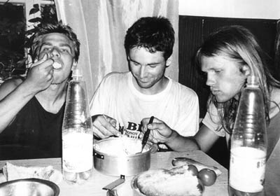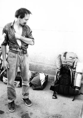 Po půlročním těšení a shánění parťáků jsem se definitivně rozhodl odjet začátkem července. Moc nadšenců jsem nesehnal, byli jsme tři a dnes můžu říct, že je to tak akorát. Na ustavující schůzi jsme stanovili datum odjezdu na pondělí 19. 7. 1999. Sraz v 9 u Náchodský kašny. Mě s Matějem tam hodil pan Brát autem, měl to zrovna při cestě, Péťa se dostavil na desátou s omluvou, že do půl šestý balil a pak si chtěl zkusit, jestli ještě zabere. Vzbudil se v devět deset. V Náchodě jsme dokoupili pár nezbytností, jako troje digitálky zn. ASAHI, týmový kšiltovky s Donaldem, repelentní indulonu, pojištění léčebnejch výloh… V poledne jsme se cestou k Běloveskýmu přechodu stavili na voběd v nádražce. Následuje procházení fronty kamionů a shánění čehokoliv jedoucího směrem Brest, Minsk či Kijev. V Minsku má totiž Péťa kámoše a i odtamtud jezdí snad lacinej bus (35 $) na Kavkaz. K nikomu jsme se nevetřeli, nastupuje varianta B, pracovně zvaná Michalovce – Užhorod. Když už jsme tady, nakupujem v Primě proviant a za hranicí cigára coby bakšiš. Vracíme se do města a stopujeme u rybárny. První stop je víceméně symbolickej – bere mě Józa Hauck, vpředu už je Péťa a frčíme si do Skalice. Na dotaz kdy nám letí letadlo odpovídáme vysvětlením varianty A i B, za což sklízíme kromě výsměchu i malý uznaní. Do Michalovců jsem se dostopoval vdruhej den, v úterý 20. V sešt večer. Sraz byl dán na autobusáku, od 16.00 každou sudou hodinu. Ještě tu nikdo nebyl. Procházím město, vracím se na osmou, zase nic. Začíná ve mně hlodat nejistota, zda nemám bejt na vlakovým nadraží, u kterýho je mimochodem taky pár autobusovejch stání. Je to tři kiláky přes město, mám co dělat abych tam v devět byl, otočil se a spěchal zpátky na desátou na autobusák. Nikde nikdo. Zato jsem potkal předsedu krajský sekce Československejch demokratů. Byl to takovej poděs, ale když jsem ho v půl jedenáctý potkal znova na autobusáku a vůkol viděl nebezpečí nočního velkoměsta, rohodl jsem se využít jeho nabídky a u něj přespat. Byl to vážně podivín. Sídlo strany, pracovnu a současně byt mu před nedávnem údajně vykradli, ležel jsem v prázdný místnosti na madracích (který oproti postelím nikdo nevzal), asi v třináctým patře paneláku s č.p. 1. Na toaletě nefungovalo splachování, proto měl v koupelně oddělanej sifon pod umývadlem a pod ním kyblík na splašky, kterejma pak splachoval. Systém šetření ovšem dovedlo k dokonalosti až zjištění, že rozdíly mezi objemem splašků a vodou potřebnou ke spláchnutí vyrovnává asi dvousetlitrová zásoba splašků v zašpuntovaný vaně. Ve středu 21. pokračuju v pendlování mezi nádražími. V šest večer jsme dokonce čtyři (přibyl Líla), kupujeme vouchery, podle kterejch nás čeká týdenní pobyt v hotelu Žirka Mukačevo. Teď nám už nic nebrání v další cestě. Během čekání na Ukrajinskej autobus, kterej nemá jízdní řád, zato jezdí za polovinu ve srovnání s SAD, potkáváme partu Slováků vracejících se z Kavkazu. Narychlo se před nastartovaným autobusem dozvídáme, že nám jede ve třičtvrtě na jedenáct pojezd obšči do Charkova, kde máme přestoupit na plackartnyj do Mineralnych Vod. Bude to stát 70 Hřiven (= 560 Kč) a to je prosím Kavkaz. Fakt štěstí. |