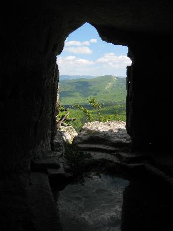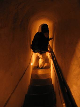 | 81. Schodištěm uvnitř skalního masivu vystupujeme na plošinu stolové hory.