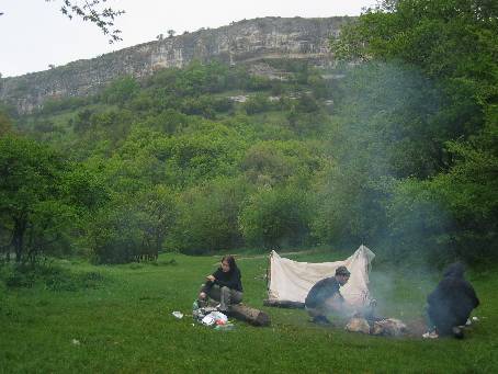 | 52. Spíme (společně se dvěma Kijevany) za Uspinským klášterem v půli cesty ke skalnímu městu...