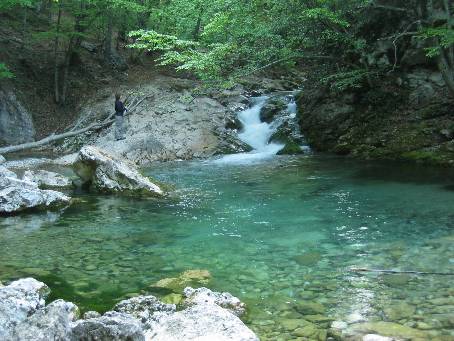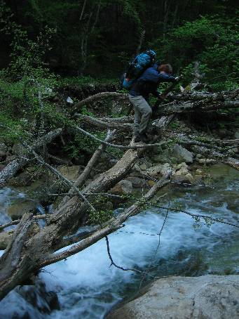 | 16. Po několikahodinovém pochodu sestupujeme zpět k říčce.