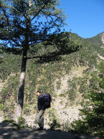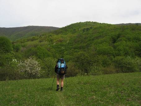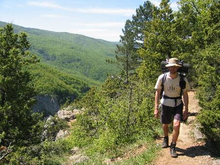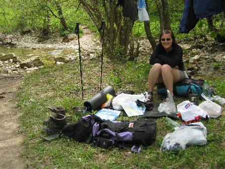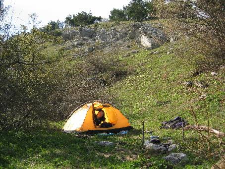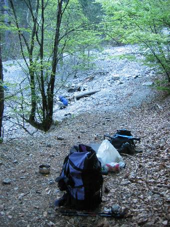 | 1. Spali jsme tajně asi kilometr za vstupem do rezervace. V 6 ráno přelézáme zpět na turistickou stezku.