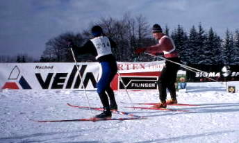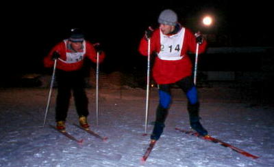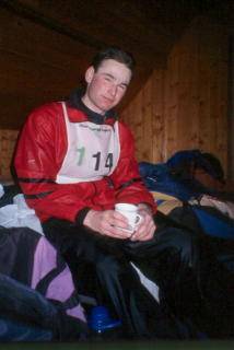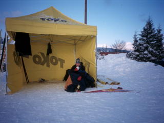 lo ovoce. Nazout lyže, nechat se plácnou, vykroužit první zatáčku, zmrznout v prvním stometrovým sjezdu, lehce se zahřát v krátkým výjezdu, opět zmrznout, vydrápat se na další kopec a konečně se zapotit, změnit stranu píchání -což souviselo s rozlámáním ledovýho krunýře, původně větrovky- a zase sjezd... ...konečně předávka, plácnot Vénu, zout lyže, oblíct bundu, mrknout na hodinky, přičíst 15 minut a to si zapomatovat, dojít 20m do chalupy, vylízt po schodech na pokoj, něco pojíst, na pět minut lehnout, furt hlídat čas. Krásně rozmrzlej (=mokrej) zase dolů, na trať, nazout lyže, vyhlížet Vénu, sundat bundu, nasadit hůlky, dostat ránu, vykroužit zatáčku, zmrznout v prvním sjezdu.Dvaačtyřicetkrát.